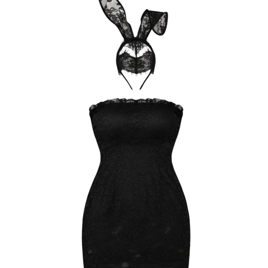 Off-shoulder black lace dress with matching headband — elegant, alluring, and modern.