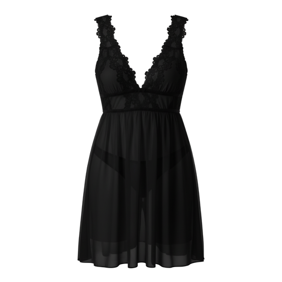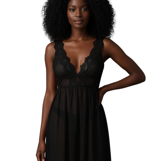 Midnight Whisper Mesh Nightdress – Black