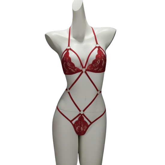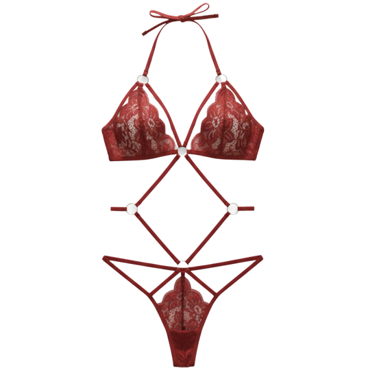 Romantic wine-red lace sleepwear inspired by moonlight and midnight florals.